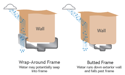“Wrap-around” frames or frames mounted flush with the exterior wall surface are not recommended for exterior walls.