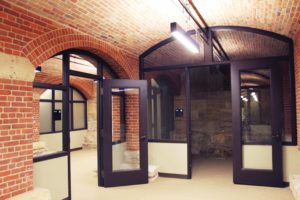 This project required some interesting custom hollow metal doors and frames. As you can see, there are lots of beautiful arches and arched doorways in the space. De La Fontaine was able to customize these openings with new steel doors while maintaining the historical appearance and significance.
