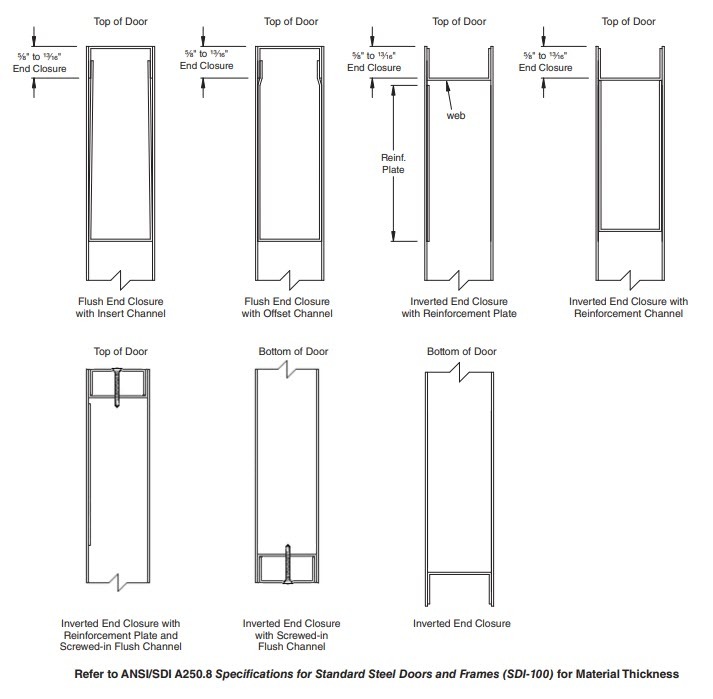 Illustrated below are example channel conditions on standard steel doors. End channel systems vary by manufacturer.